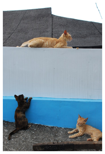 小小屋頂上擠了好幾隻貓