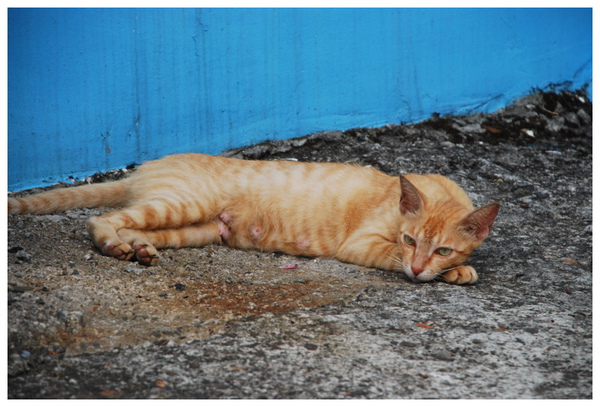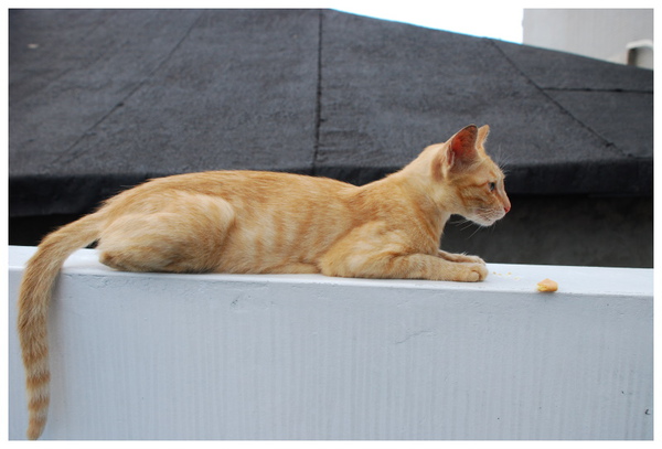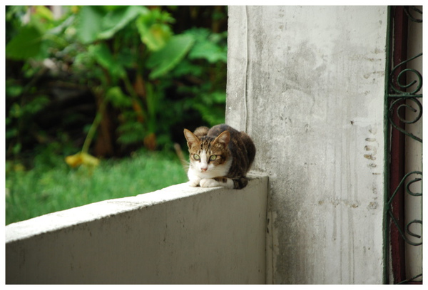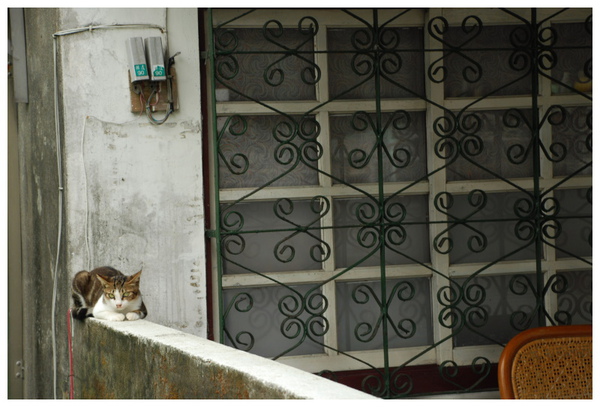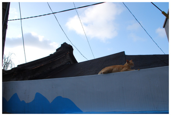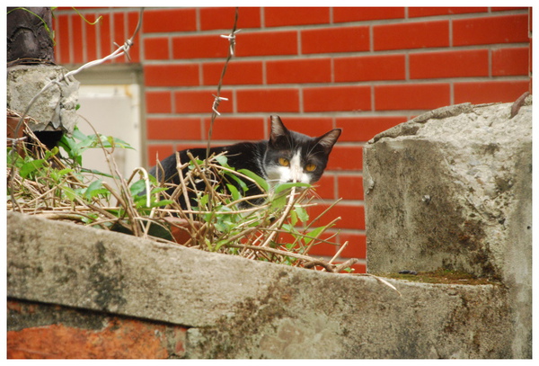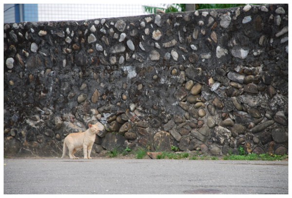 在巷弄間見到他在圍牆上休息